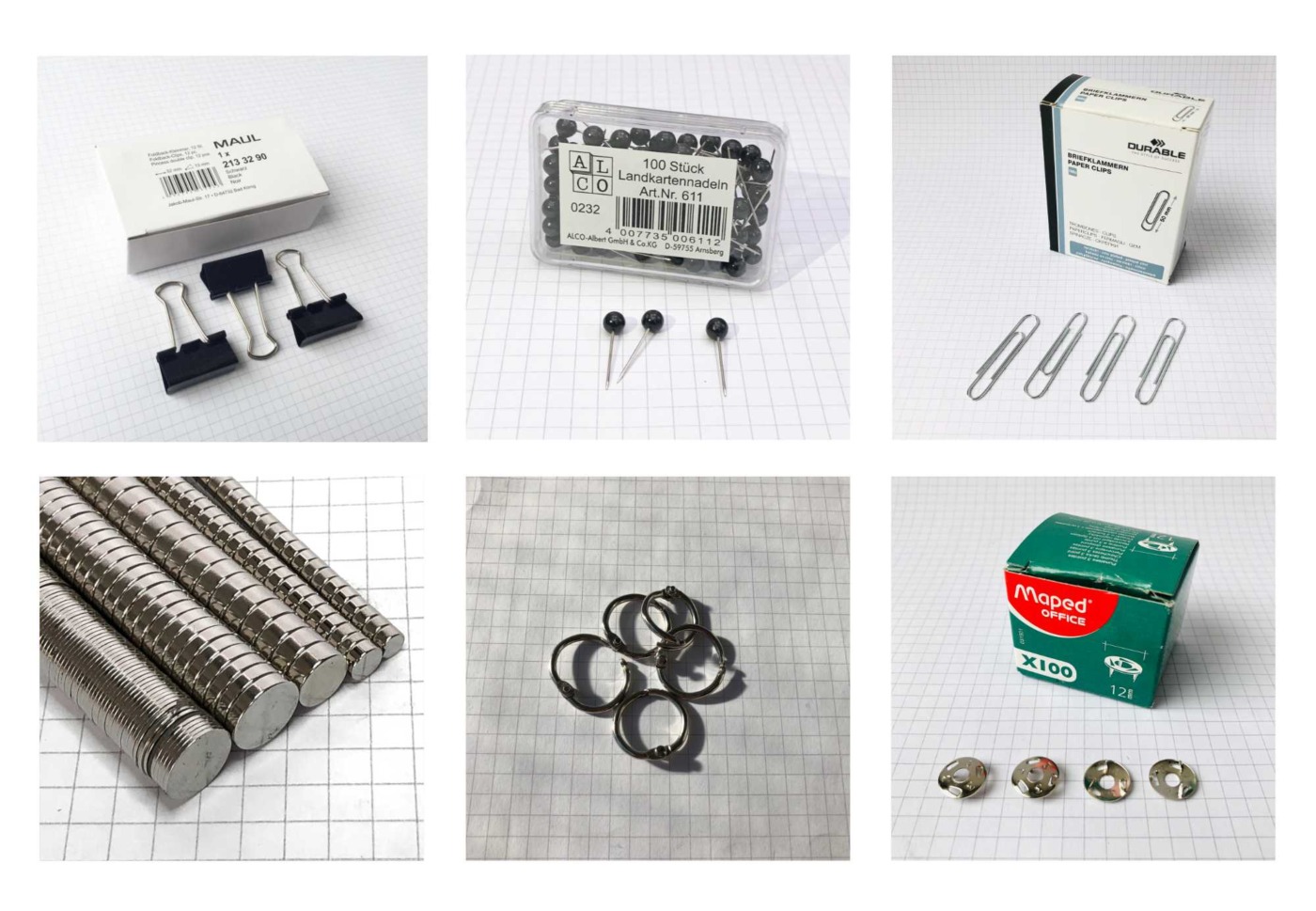 - diverse Clipse, Klammern und Nadeln (z.B. Abb. 1.b., 1.c., 2.c.)