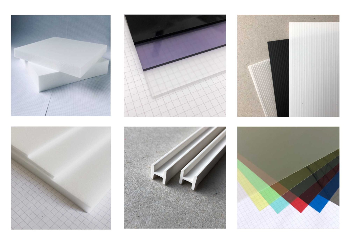 - Polystyrol-Platten (bis 100x200cm): 0.5mm, 1mm, 1.5mm, 2mm, 3mm